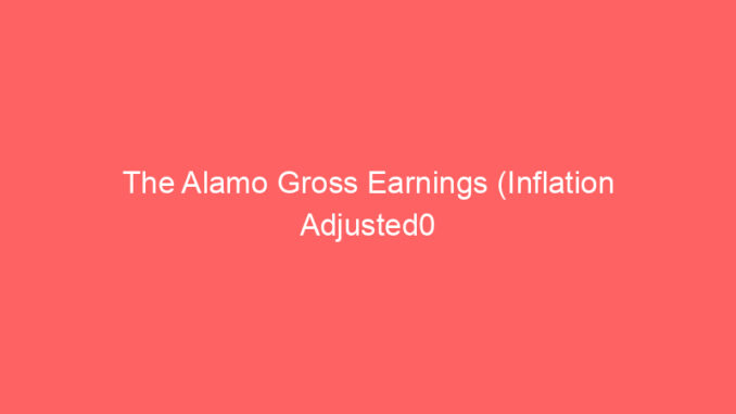 The Alamo Gross Earnings (Inflation Adjusted0 March 20, 2024 aleksandarmilojevik Blog, Disney 0 Below you can fid the release date and gross earnings of The Alamo. Movie: The Alamo Release Date: 2004-04-09 Genre: Western Total Gross: 22406362 Inflation Adjusted Gross: 30416359