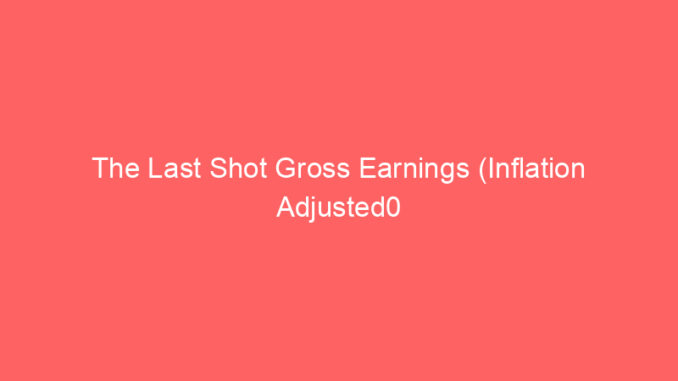 The Last Shot Gross Earnings (Inflation Adjusted0 March 20, 2024 aleksandarmilojevik Blog, Disney 0 Below you can fid the release date and gross earnings of The Last Shot. Movie: The Last Shot Release Date: 2004-09-24 Genre: Comedy Total Gross: 463730 Inflation Adjusted Gross: 629502