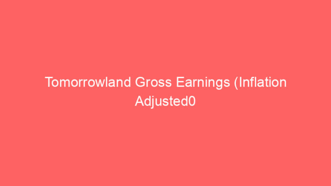 Tomorrowland Gross Earnings (Inflation Adjusted0 March 20, 2024 aleksandarmilojevik Blog, Disney 0 Below you can fid the release date and gross earnings of Tomorrowland. Movie: Tomorrowland Release Date: 2015-05-22 Genre: Adventure Total Gross: 93436322 Inflation Adjusted Gross: 93436322